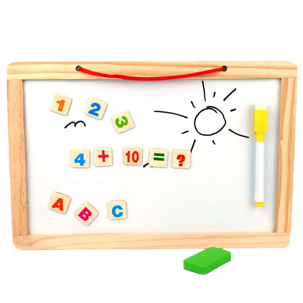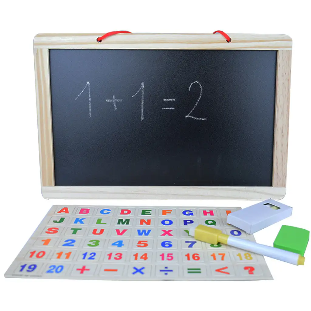 2 v 1 dřevěná magnetická kreslící tabule s magnetickými písmeny, fixou a křídou2 v 1 dřevěná magnetická kreslící tabule s magnetickými písmeny, fixou a křídou