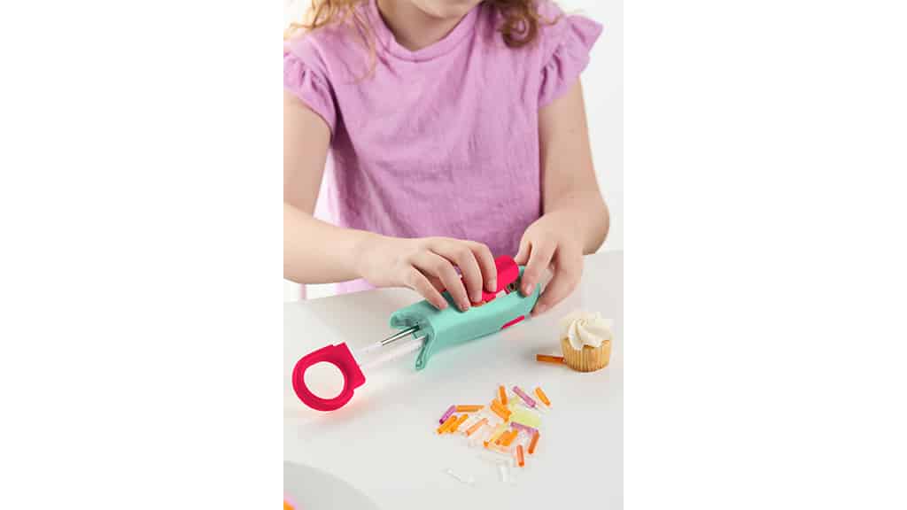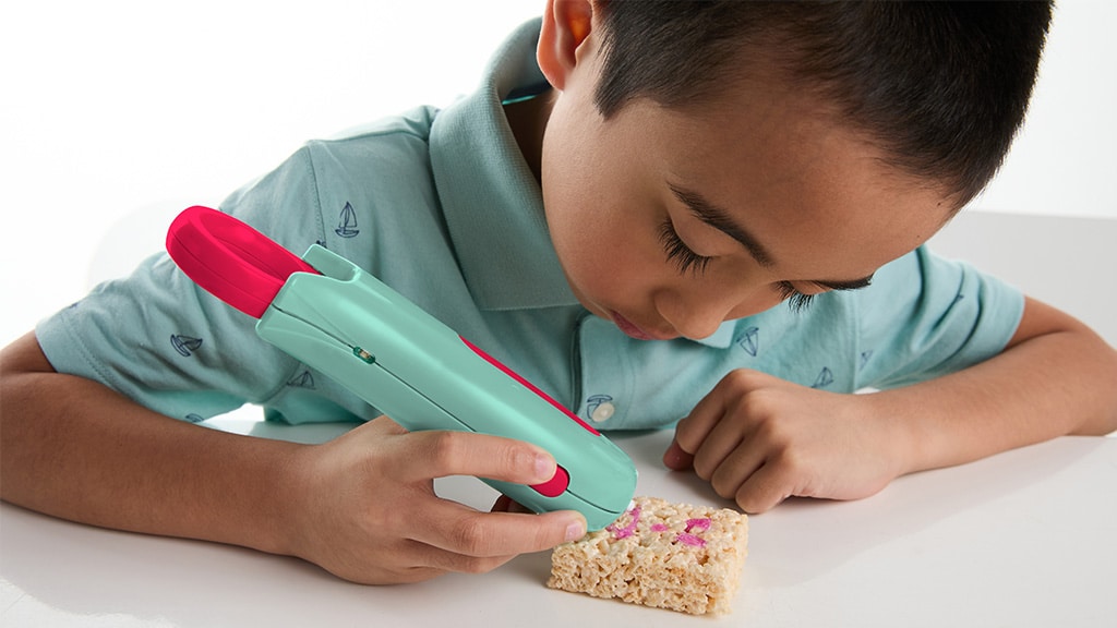 3Doodler Candy Pen je potravinářská 3D pero, které umožňuje dětem od 8 let vytvářet jedlé umělecké výtvory pomocí potravinářsky bezpečných cukrových kapslí. Uživatelé jednoduše vloží kapsli do pera, počkají, až dosáhne správné teploty, a stisknutím tlačítka vytlačí cukrovou hmotu, čímž mohou tvořit trojrozměrné tvary přímo na muffiny, sušenky nebo dokonce na pečicí papír. Tento kreativní nástroj není jen zábavný, ale rozvíjí i zručnost, kreativitu a jemnou motoriku, zatímco si děti mohou vytvářet vlastní jedlé dekorace na své pečivo nebo dezerty. Candy Pen je ideální volbou na narozeninové oslavy, rodinná setkání nebo jakoukoli příležitost, kdy děti chtějí ukázat svou kreativitu a užít si radost z tvoření.