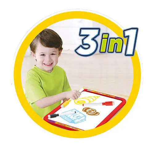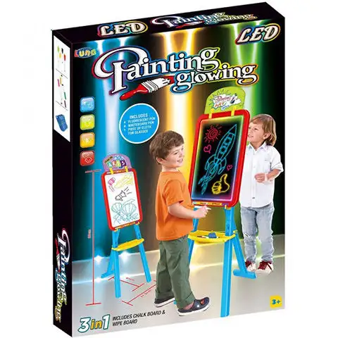 Můžete pořídit svému dítěti speciální kreslící tabuli, která má oboustranný panel a díky LED osvětlení se pro vaše dítě může otevřít nový rozměr v kreslení. Tabule obsahuje jako příslušenství fluoreskující pera a fixy, s nimiž může vaše dítě okamžitě začít tvořit. Osvětlení tabule funguje na baterie, které nejsou součástí balení. Tabuli může vaše dítě vzhledem k jejím rozměrům začít používat již od tří let a začít tvořit.