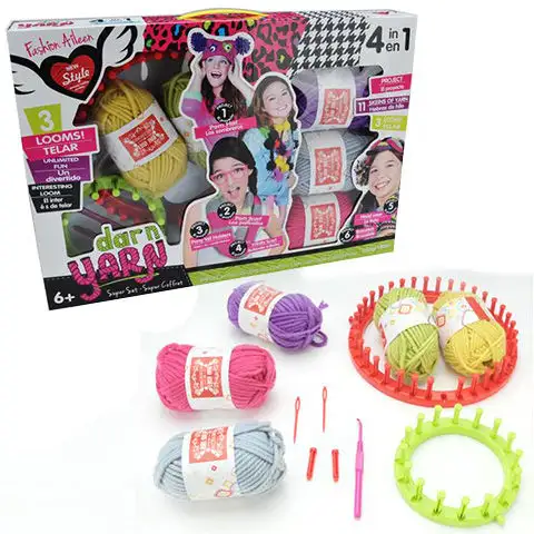 V balíčku 4 v 1 pro tkaní najde vaše dítě všechny nástroje a materiály potřebné pro zvládnutí prvních kroků v tkaní. S pomocí čtyř různých barev příze může vytvořit módní oděvy během okamžiku, ať už jde o čepici, šálu nebo svetr pro její oblíbenou panenku. Použitím sady může rozvíjet svou zručnost a jen její fantazie může omezit tvorbu.