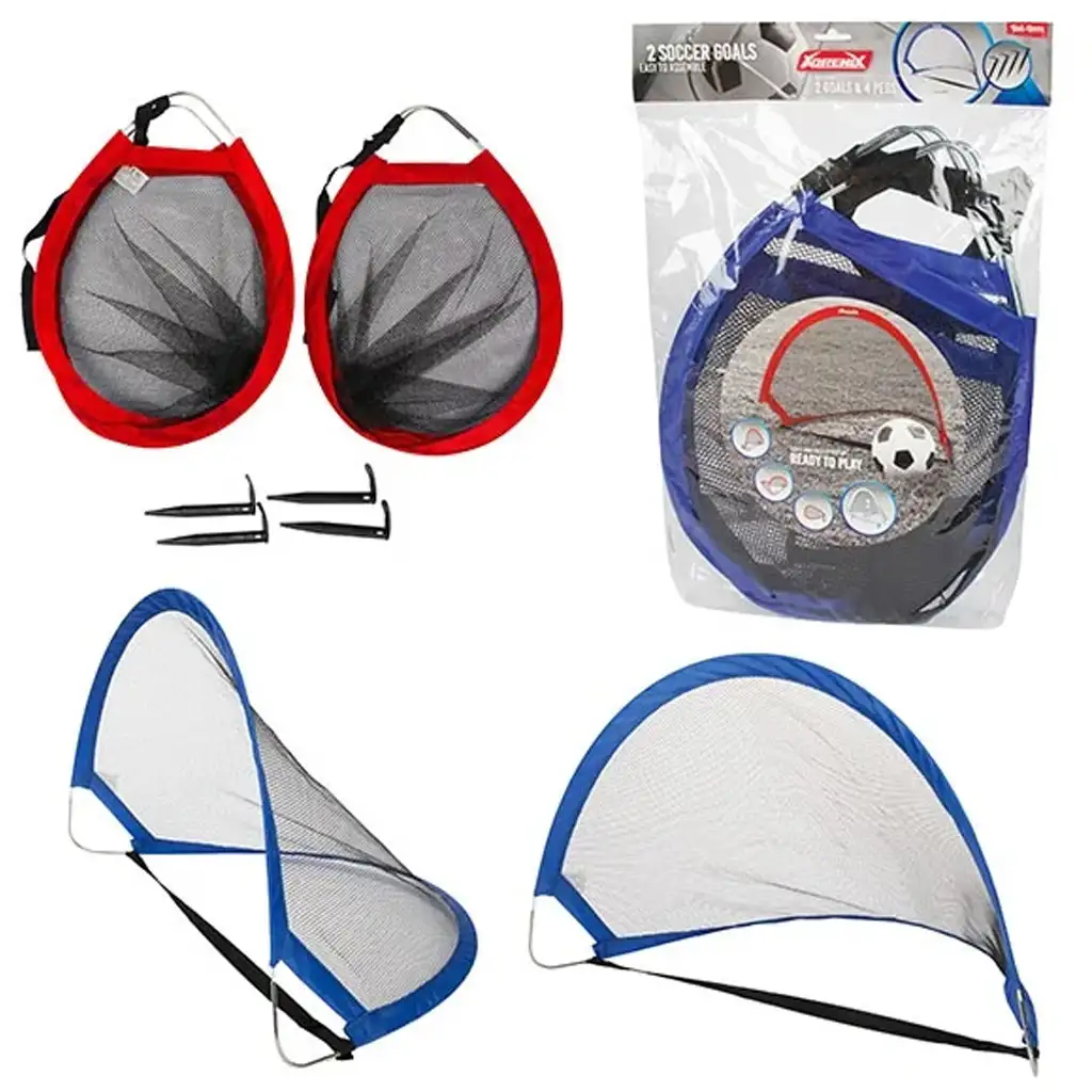 Sada obsahuje dvě síťové branky, které lze jednoduše rozložit a postavit během několika sekund. Pro stabilitu jsou vybaveny upevňovacími kolíky, takže branky zůstanou na místě i při silnějších střelách. Díky lehké konstrukci je mohou děti snadno přenášet a manipulovat s nimi.