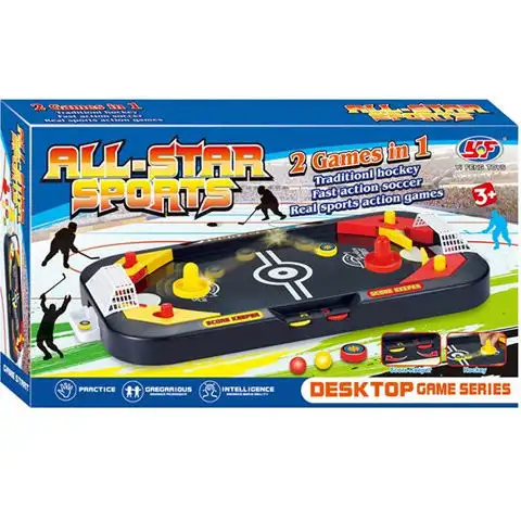 Různé sporty mohou být skvělou zábavou pro každého, nyní si můžete vzít vzrušení z hokejového zápasu do svého domova. Tato sada obsahuje stolní hokej, který je snadno použitelný, ale pouze ti nejšikovnější dokážou odrážet přicházející puk. Výsledek lze zaznamenat na počítadle vestavěném do strany hřiště a na konci vyhraje ten, kdo nejvícekrát dostal puk do branky soupeře. Hru můžete hrát s obyčejným úderem nebo dokonce s pružnými páky v brance.