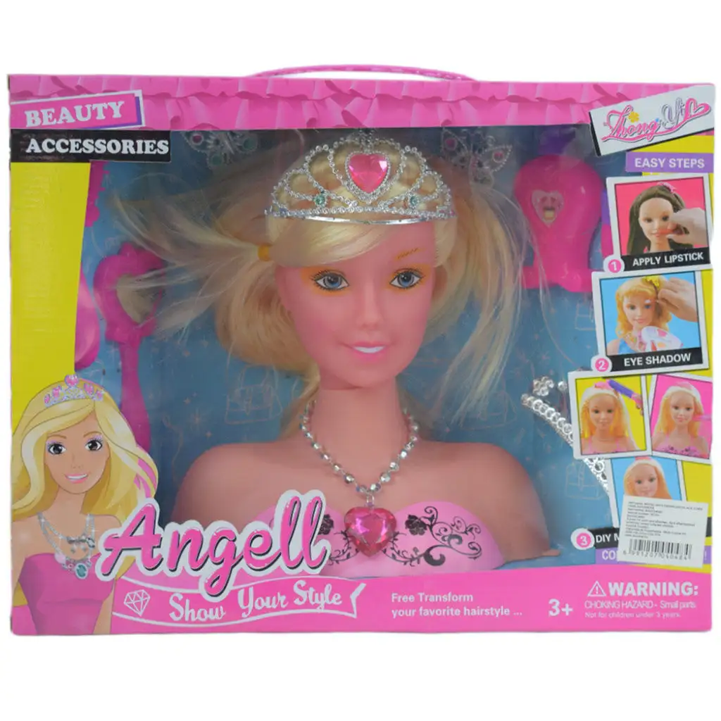 Angell: Česatelná a stylizovatelná hlava panenky s tiárou a doplňky 21cmAngell: Česatelná a stylizovatelná hlava panenky s tiárou a doplňky 21cm