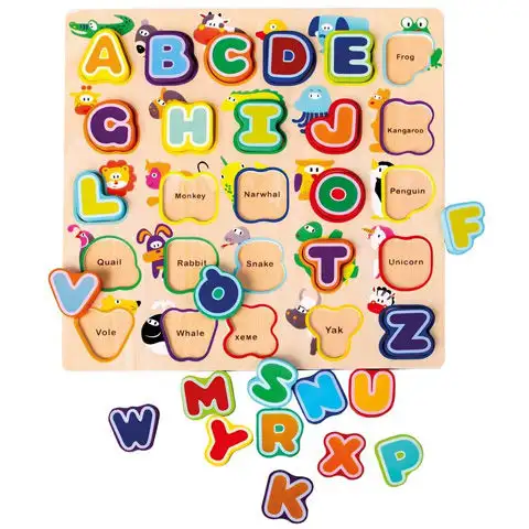 Tato dřevěná hra na rozvoj dovedností je skvělou volbou pro děti, které se již od útlého věku seznamují s angličtinou, protože hra učí děti anglické abecedy pomocí různých zvířat. Pod písmeny je jméno zvířete, které začíná daným písmenem, takže například k B patří Bear jako medvěd a k S patří Snake jako had. Hra samozřejmě kromě seznámení dětí s písmeny a angličtinou skvěle rozvíjí také rozpoznávání tvarů a jemnou motoriku.