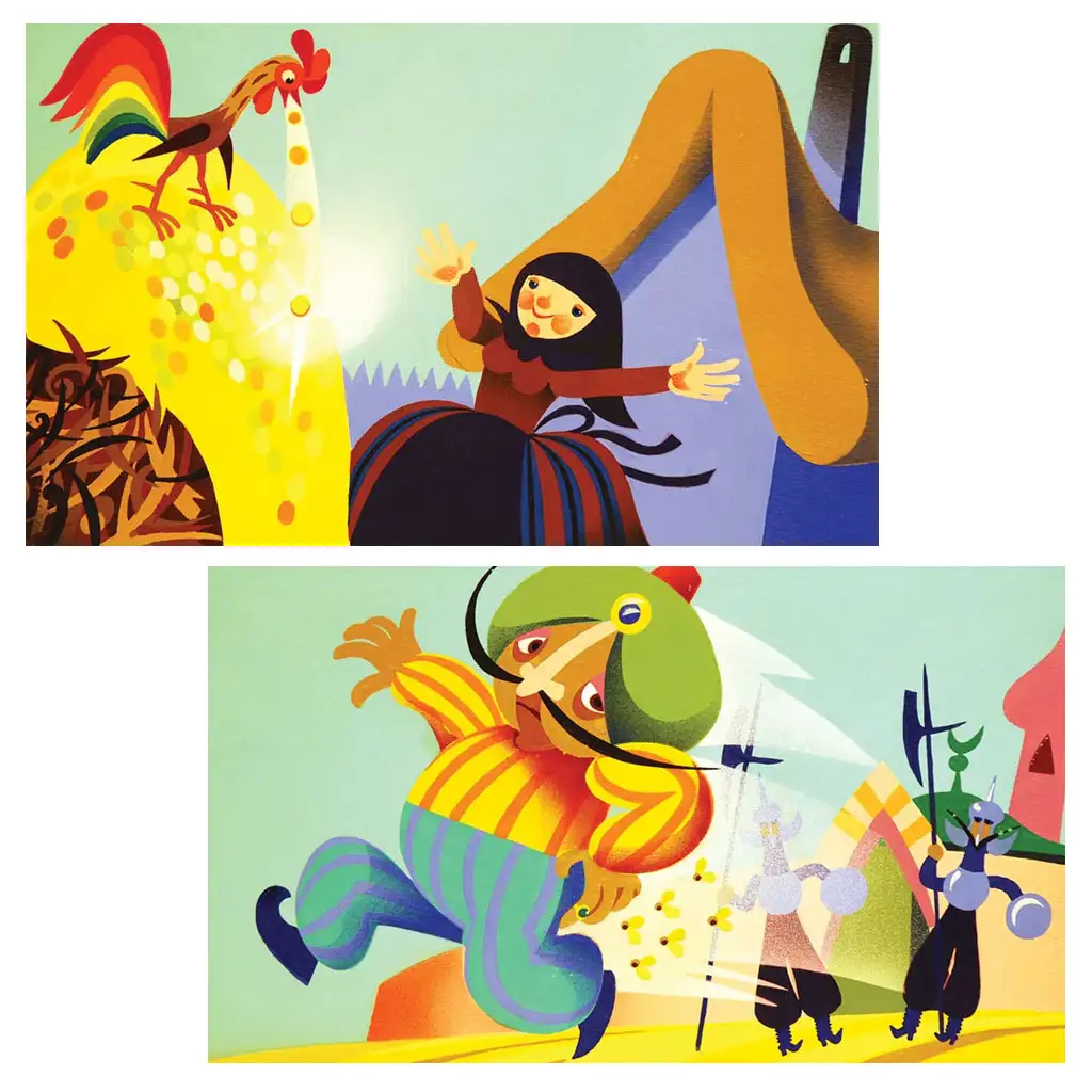 Objevte znovu příběh o Kohoutkovi a jeho diamantovém půlpenci s pomocí tohoto speciálního diapozitivu a nechte, aby moudrost postav a kouzlo pohádky proměnily okamžiky v nezapomenutelný zážitek!