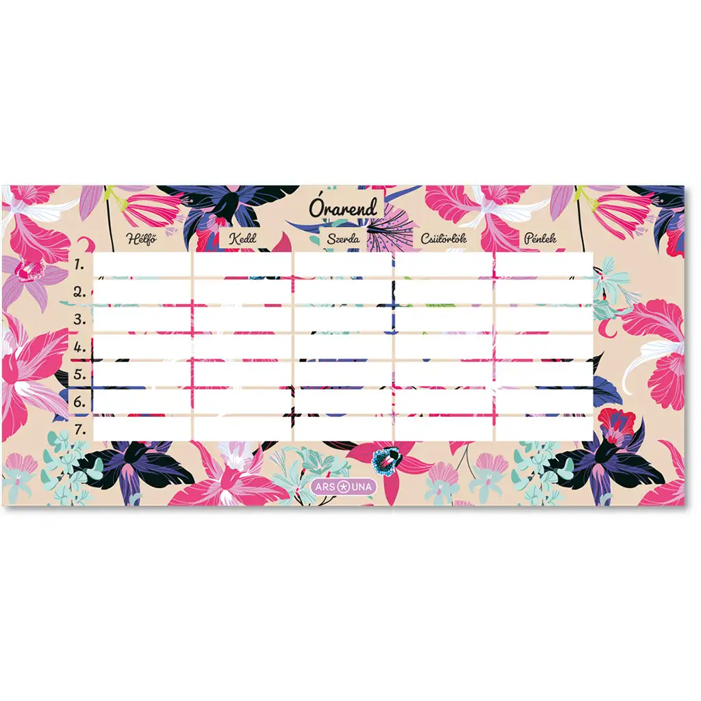 Rozkvetlý rozvrh na každý školní týden! Rozvrh Beach Flowers od Ars Una je skutečně stylový kousek, který je nejen praktický, ale zároveň i potěší oko. Květinový design v elegantních pastelových odstínech a bohatých barvách zdobí rozvržení od pondělí do pátku, takže je ideální volbou pro všechny, kteří mají rádi módní a barevné doplňky ke studiu.