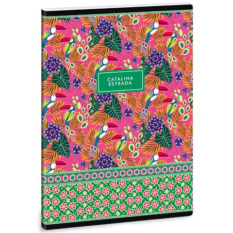 S tímto stylovým čtverečkovaným sešitem Catalina Estrada můžete do školních potřeb dětí vnést tropickou svěžest a radost, díky jeho živým barvám, stejně jako díky tukanovi a tropické vegetaci, které tvoří vzor sešitu. Sešit má formát A5 a celkem čtyřicet čtverečkovaných listů, takže bude dlouho využitelný. Obálka je vyrobena z 350g papíru, což ji činí velmi odolnou a dobře chrání vnitřní stránky před fyzickým poškozením, navíc obdržela 3D UV lak, který její vzhled činí velmi unikátním.