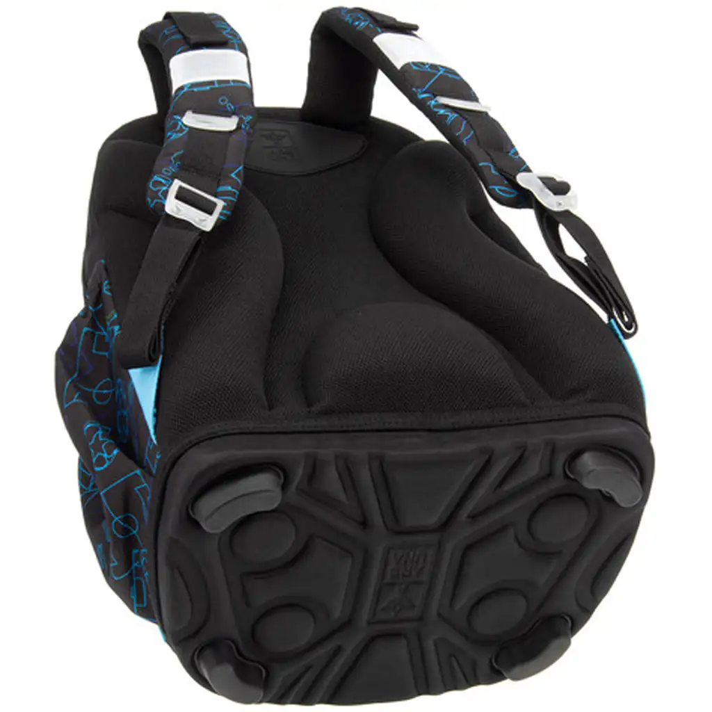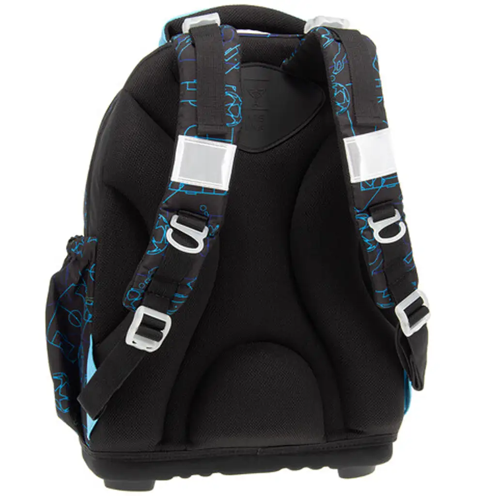Spodní část tohoto odolného batohu je vyrobena z pevné látky, kterou doplňují čtyři stabilní plastové nožky – takže batoh je nejen trvanlivý, ale také dobře stojí na zemi. Uvnitř najdete tři přihrádky na zip, přičemž největší přihrádka má textilní přepážku pro lepší organizaci a v nejmenší je našitý držák na psací potřeby i kapsa na průkazku. Dvě boční kapsy s gumovým lemem poskytují prostor na láhev nebo jiné drobnosti. Bezpečnost nebyla opomenuta: na batohu najdete několik větších reflexních prvků, které zajistí, že vaše dítě bude dobře viditelné i v provozu.