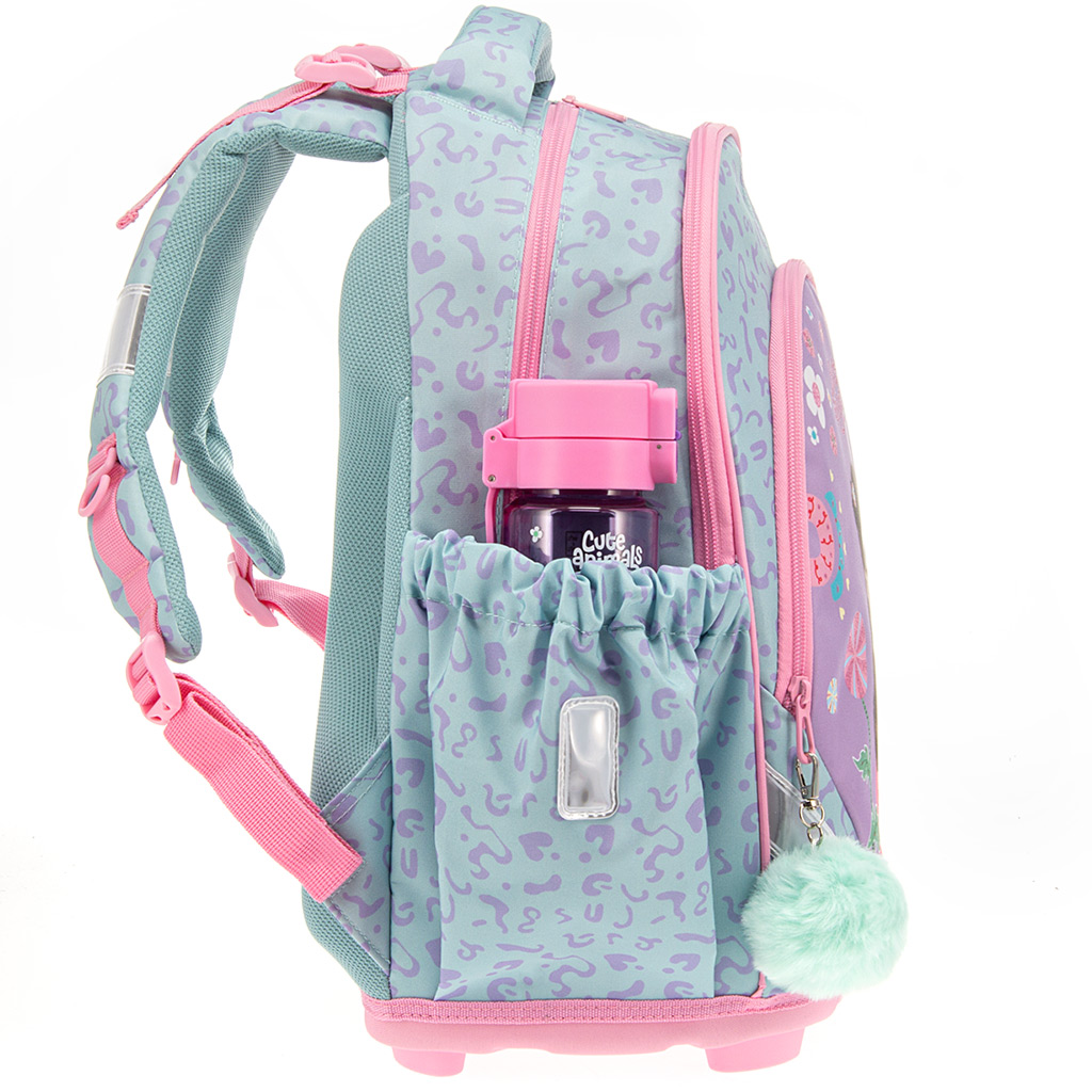 Díky praktickému provedení jsou k dispozici 3 prostorné přihrádky na zip, do kterých se veškeré školní potřeby snadno vejdou. V největší přihrádce pomáhá s organizací textilní přepážka, zatímco v menší přihrádce je zvláštní místo pro psací potřeby a průkaz. Dvě boční kapsy s gumou jsou ideální na lahev nebo menší předměty.