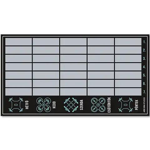 Rozvrh Drone Racer byl inspirován populárními dálkově ovládanými kvadrokoptérami, neboli drony, a tak si získá především oblibu malých kluků, navíc byla jeho velikost zvolena tak, aby se pohodlně vešel do většiny penálů. Rozvrh vyrobený z pevného papíru je ideální k tomu, aby v penálu připomínal o nadcházejících hodinách. Každý den může být zaznamenáno až sedm různých hodin, ale protože rozvrh má oboustranný design, lze na něm sledovat jak týden A, tak týden B.