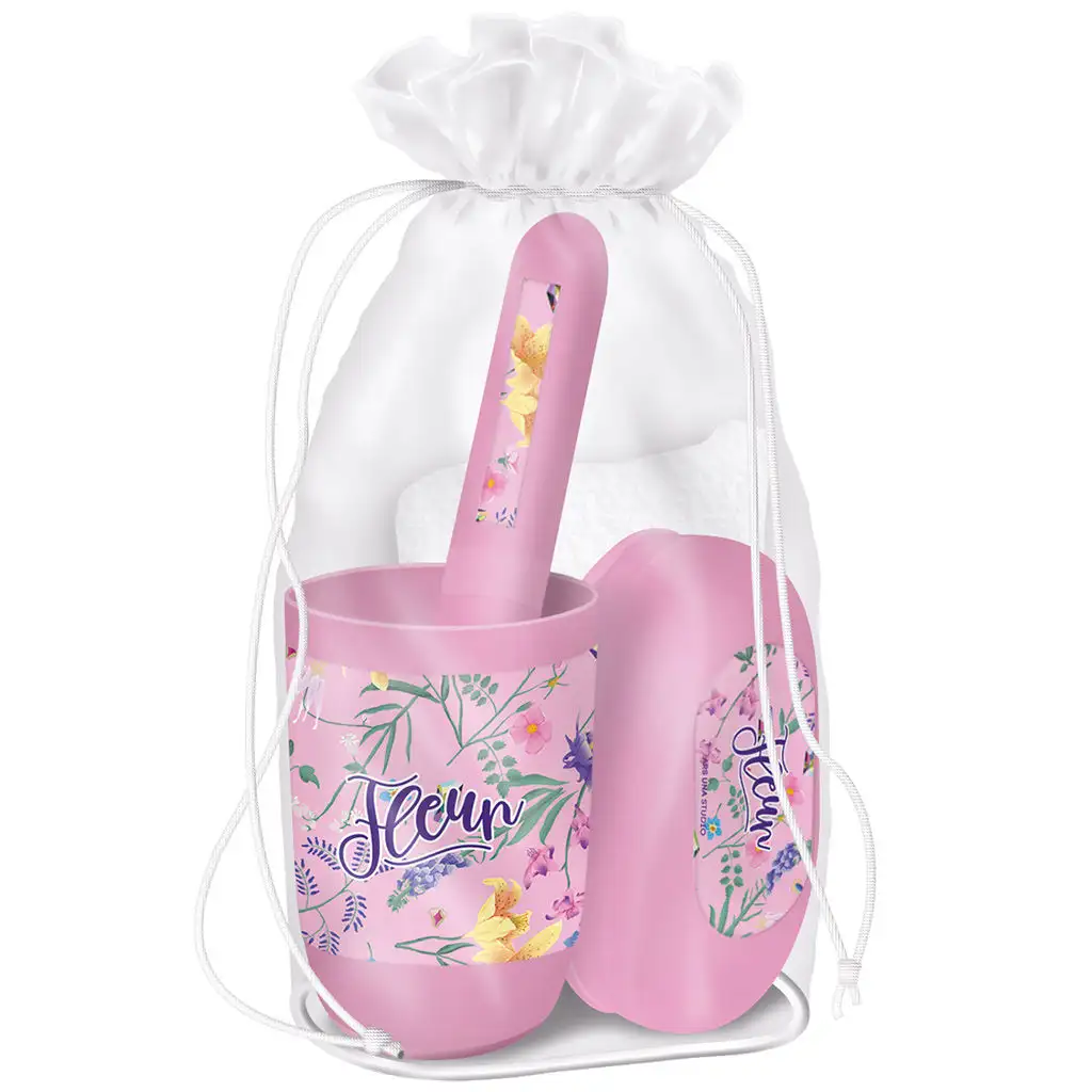 Ars Una Fleur hygienický balíček je ideální volbou pro každého, kdo má rád elegantní a stylový vzhled, aniž by dělal kompromisy ve funkčnosti. Tento balíček přichází se světlě růžovým květinovým vzorem na průhledném plastovém sáčku se stahovací šňůrkou, což umožňuje snadné přenášení a skladování během cestování nebo každodenního použití.