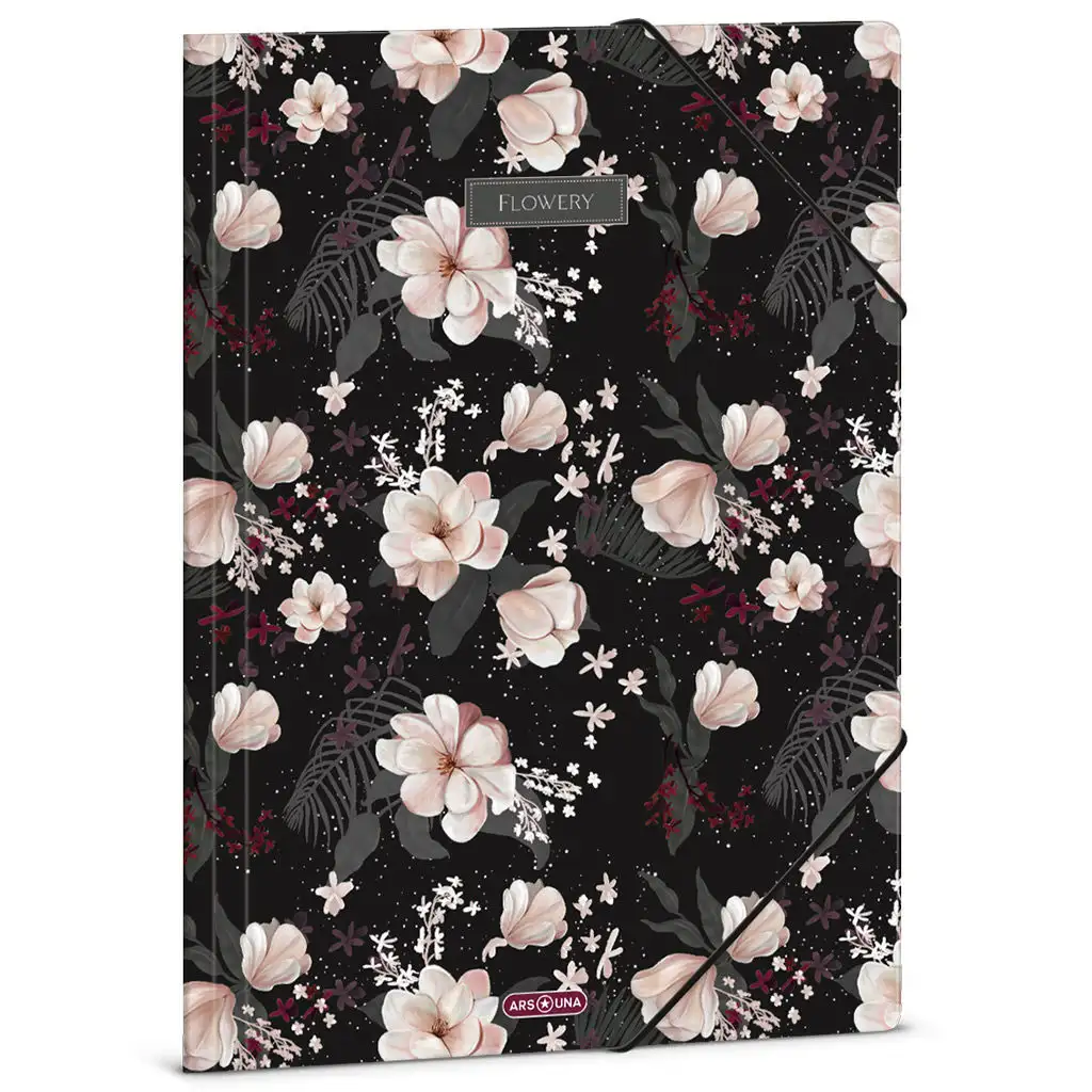 Ars Una: Flowery Black květinová gumičková složka A/4Ars Una: Flowery Black květinová gumičková složka A/4