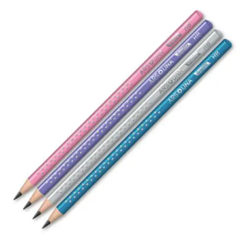 Tyto speciální, v několika barevných variantách dostupné prémiové grafitové tužky Ars Una si získají oblibu jak u dětí, tak u dospělých. Grafitové tužky zdobené vzorem hvězd vynikají svou vysokou kvalitou a splňují i ty nejvyšší nároky. Prémiové grafitové tužky Ars Una jsou skvěle použitelné ve škole, doma nebo dokonce pro kancelářskou práci. Trojúhelníkový design zajišťuje pohodlný úchop při používání. Tužka je vyrobena z kvalitního dřeva a je naplněna lámavostí odolnou tuhou. Tvrdost HB je nejuniverzálnější, skvěle použitelná pro všechny účely.