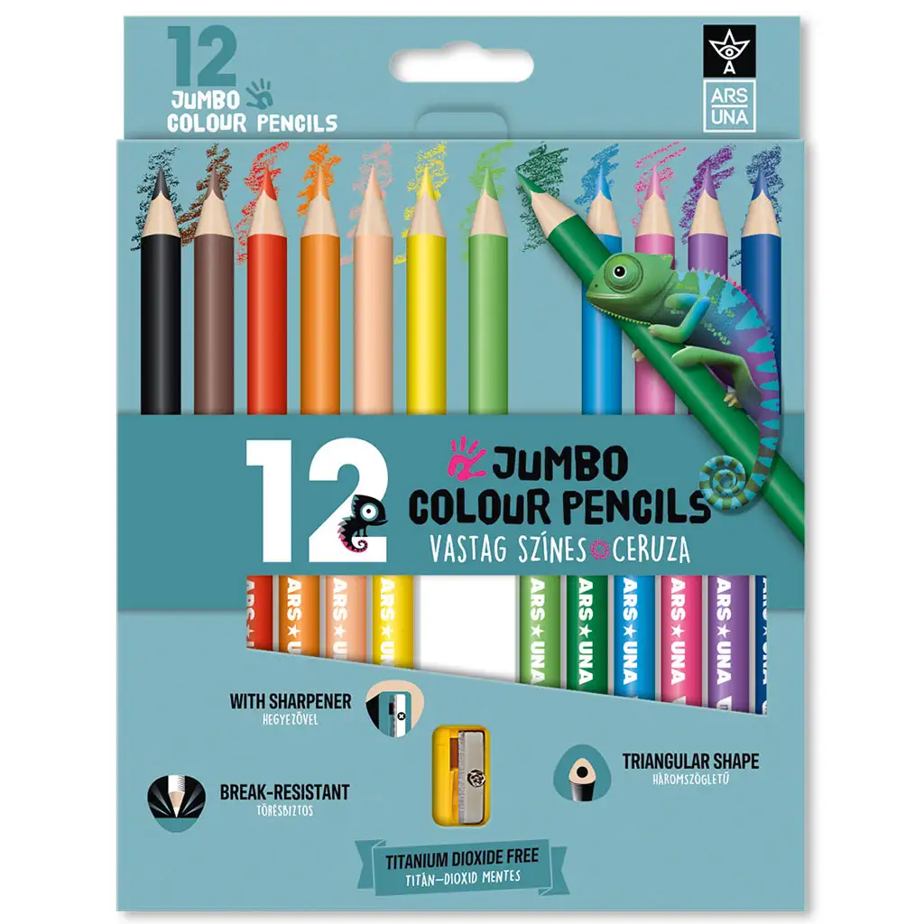 Ars Una JUMBO 12 barevná trojúhelníková sada barevných tužek je skutečně zvláštní volbou, která každému malému umělci přináší radost z kreslení a malování. Sada obsahuje 12 živých a zářivých barev, které zaručují, že dětské kresby budou plné života a bohaté na barvy. Tyto tužky jsou ideální pro nejmladší, protože jejich JUMBO velikost a ergonomický trojúhelníkový design umožňují snadné a správné držení tužky. To je obzvláště důležité pro rozvoj jemné motoriky a pomáhá dětem osvojit si správnou techniku držení již v raném věku.