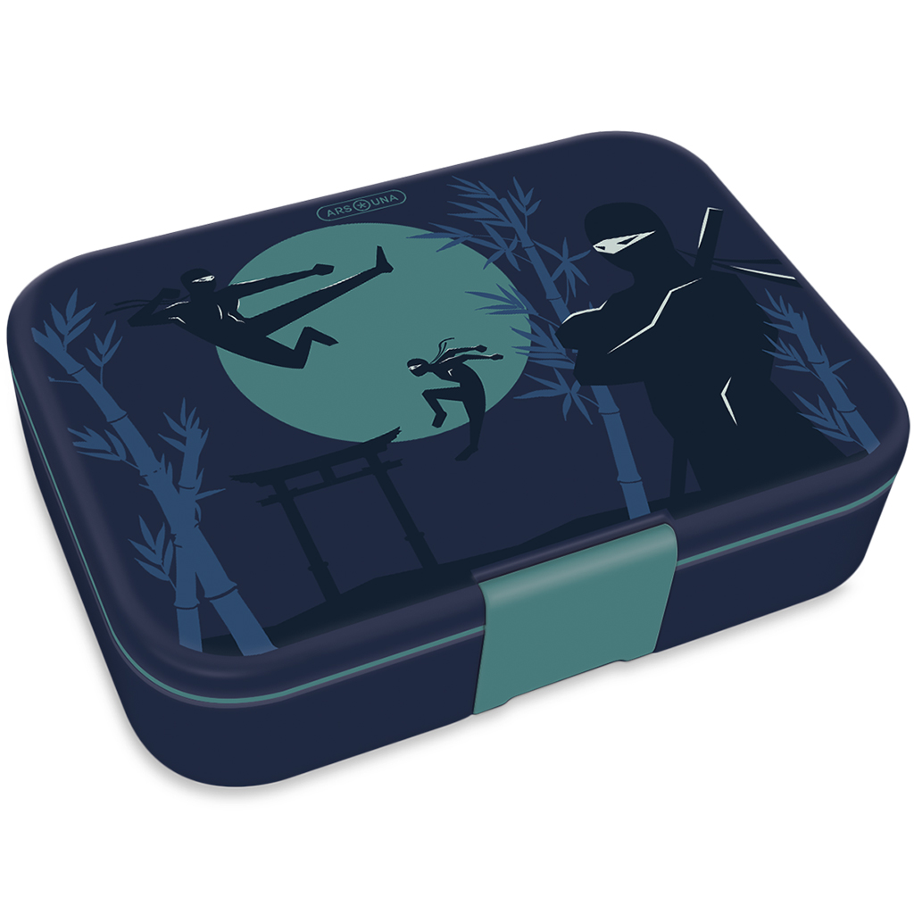 Dělená svačinová krabička Ars Una Ninjas in the dark je skvělou volbou, pokud vaše dítě má rádo vzrušující, stylové motivy. Temný, ninjový design ji činí opravdu výjimečnou, takže ji dítě jistě bude rádo nosit do školy nebo na výlet. Díky praktickému vnitřnímu uspořádání zůstane svačina vždy uklizená: vyjímatelná silikonová přepážka pomáhá odděleně ukládat ovoce a další pochoutky. Krabička je bez BPA, vyrobená z bezpečného materiálu, navíc s 80% podílem recyklovaného PET, takže jde také o ekologické řešení. Kromě odolné konstrukce je tepelně odolná v rozmezí -20 až +100 °C, proto je vhodná i do mrazáku, avšak není použitelná v mikrovlnné troubě.