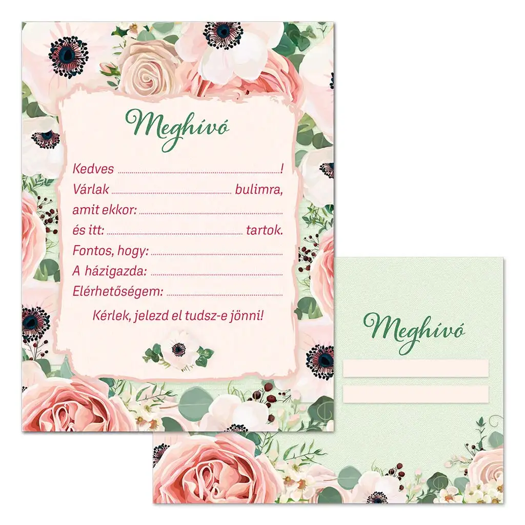 Toto pozvánka na party s růžovým vzorem vyzařuje skutečnou eleganci a je ideální volbou pro výjimečné události, jako jsou narozeninové oslavy, křtiny nebo stylové oznámení přátelského setkání. Pozvánku zdobí pastelově zbarvené růže, máky a zelené listy, které jemně orámují textové pole uprostřed. Klasický, ale zároveň půvabný design potěší všechny věkové kategorie.