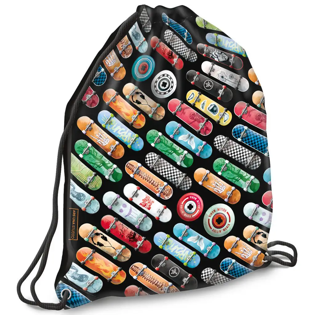 Ars Una: Rollin Mania skateboard vzor černý cvičební pytel, sportovní taška 32x42cm