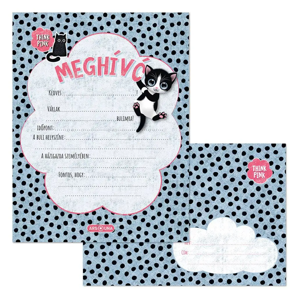 Ars Una: Think Pink kočičí sada 10 pozvánek s obálkouArs Una: Think Pink kočičí sada 10 pozvánek s obálkou