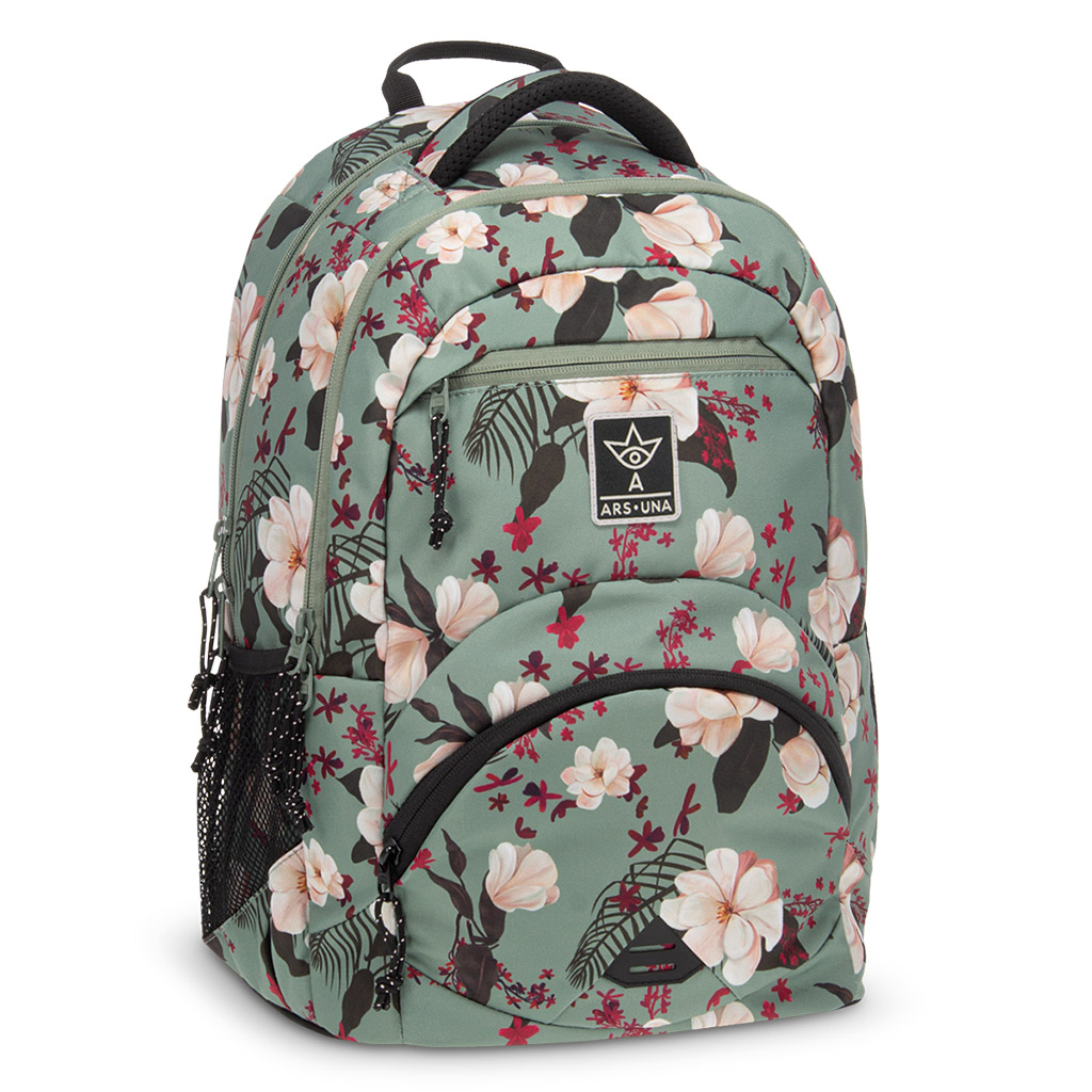 Ars Una: květinově zelený ergonomický školní batoh 27 l