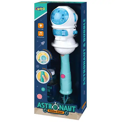 Astronaut foukající mýdlové bubliny se světlem a zvukem