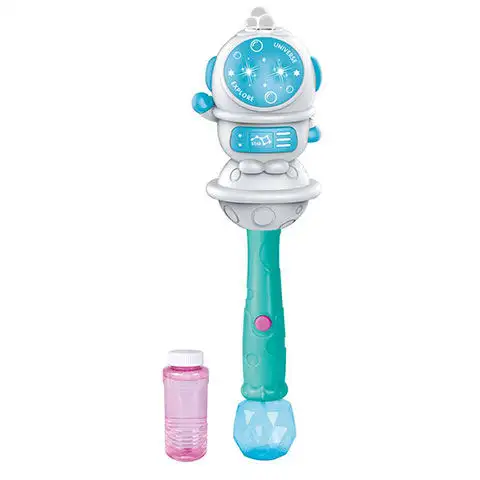 Tato super mýdlová bublifuková hůlka bude určitě oblíbená mezi malými kluky, protože na konci je malá vesmírná loď s figurkou, z jejíž hlavy lze kouzlit bubliny. Souprava samozřejmě obsahuje i potřebnou tekutinu pro doplnění nádrže hračky. Jakmile je připraveno, stačí stisknout tlačítko a okamžitě začnou bubliny vylétávat z přilby astronauta, navíc celý proces lze pro malé děti zábavnější díky světlům a zvukovým efektům.