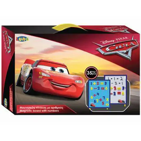 Ve filmu Auta se děti seznámily s Bleskem McQueenem a vzrušujícími automobilovými závody, a s pomocí této magnetické tabule se mohou hravě seznámit se světem čísel. Tabule umožňuje dětem poznat čísla a základní matematické operace, jako je sčítání, odčítání, násobení a dělení. Tabule ozdobená oblíbeným Disneyho hrdinou, Bleskem McQueenem, jistě získá oblibu dětí, které se s její pomocí s radostí seznámí se světem čísel.