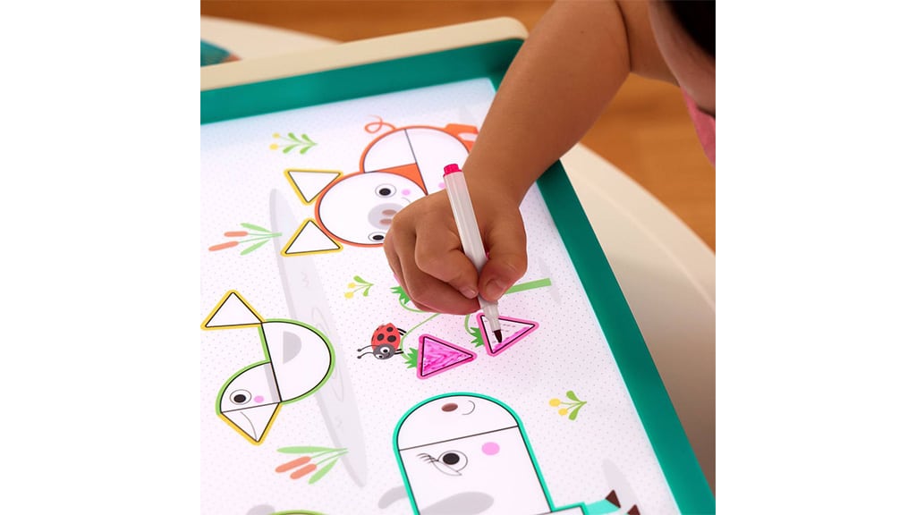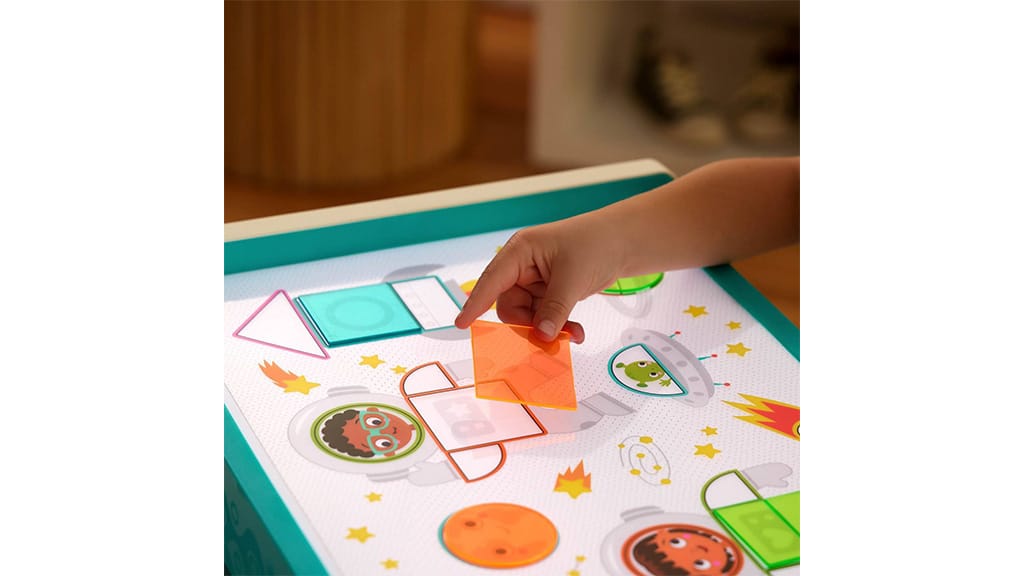 Rodiny mohou motivovat děti k učení i mimo třídu pomocí sady Look & Shine Light Box Playset. Tato sada obsahuje 71 dílů, včetně více než 60 vzdělávacích doplňků, jako je 50 barevných čísel a tvarů, pět suchých stíratelných fixů s gumou a tři vyměnitelné průhledné barevné listy. Zařízení funguje na baterie nebo přes USB-C a nabízí pět světelných barev a dvě nastavení jasu.