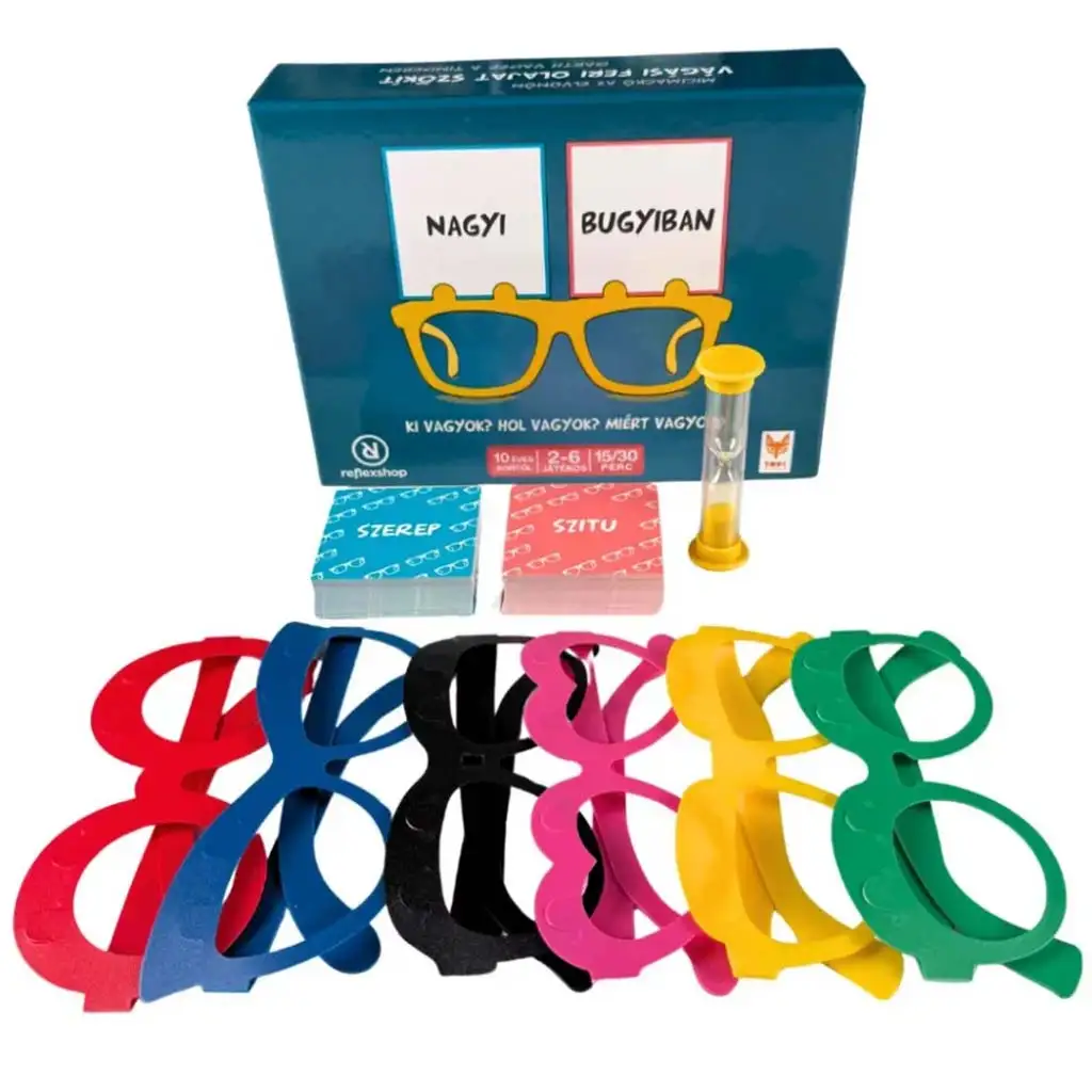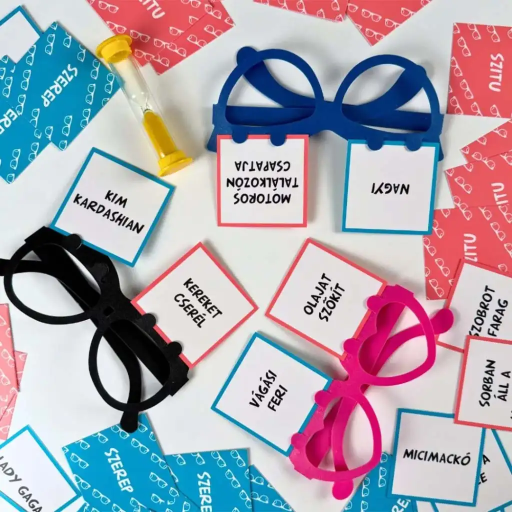 - Obsah balení: 50 karet s rolemi, 50 karet se situacemi, 24 prázdných karet, 6 brýlí, 1 přesýpací hodiny, 1 pravidla