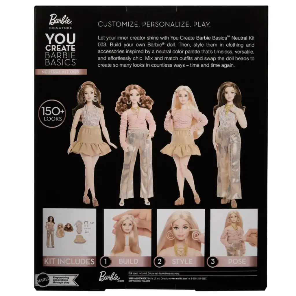 Barbie: You Create panenka je speciální herní sada založená na kreativitě, ve které si děti (a sběratelé) mohou znovu a znovu vytvářet vlastní vzhled Barbie. Tato prémiově působící sada je součástí kolekce Barbie Signature a klade důraz na možnost personalizace. Sada obsahuje několik vyměnitelných prvků, takže účes, oblečení a styl panenky lze různě kombinovat, což umožňuje vytvořit více než 150 různých vzhledů. Oblečení a doplňky v neutrálních barvách působí nadčasově a elegantně, přičemž podporují sebevyjádření a experimenty s módou. Díky pohyblivým kloubům lze panenku snadno polohovat, což zpříjemňuje jak hraní, tak vystavování. Ideální volba pro ty, kteří mají rádi originální styl, tvoření a kreativní stránku světa Barbie.