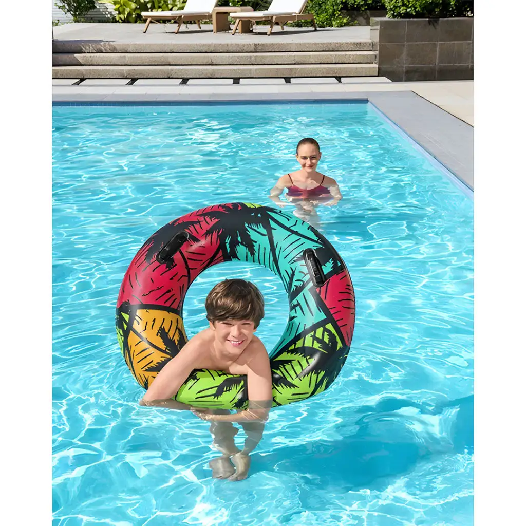 Tento nafukovací kruh je speciálně navržen pro plavce starší 10 let a má barevný, umělecký design s motivem pobřeží, díky kterému se budete cítit, jako byste opravdu byli na dovolené, aniž byste museli opustit dvorek.