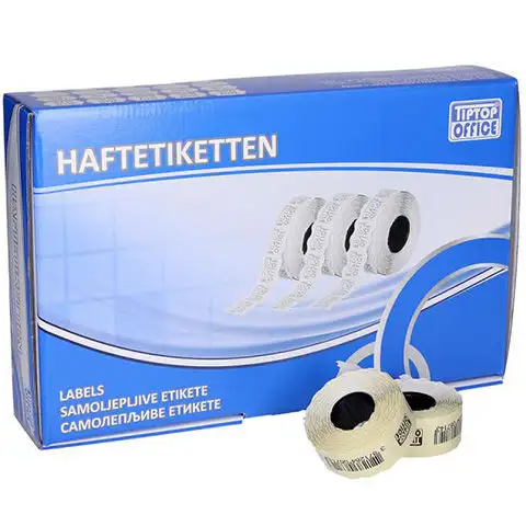 Cenové štítky jsou stále používány, přestože nejčastěji jsou produkty identifikovány a cenově označeny na pokladnách pomocí čárového kódu, ale pro zákazníky je cenový štítek nejjasnějším zdrojem informací. Na tomto kotouči se nachází štítek o rozměrech šestadvacet krát šestnáct milimetrů, na který lze pomocí tradičních cenových značkovačů přidat cenu nebo datum nebo cokoli, co daný stroj dokáže zpracovat. Na bílém podkladu štítku je tisk výborně viditelný a díky samolepící zadní straně se skvěle drží na jakémkoli povrchu.