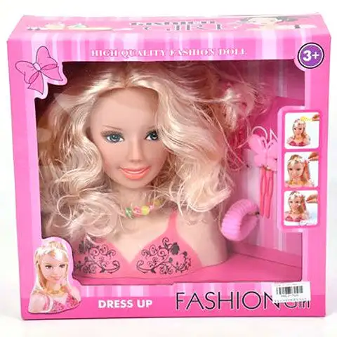 Blonďatá česací hlava panenky s hřebenem a gumičkami do vlasůBlonďatá česací hlava panenky s hřebenem a gumičkami do vlasů
