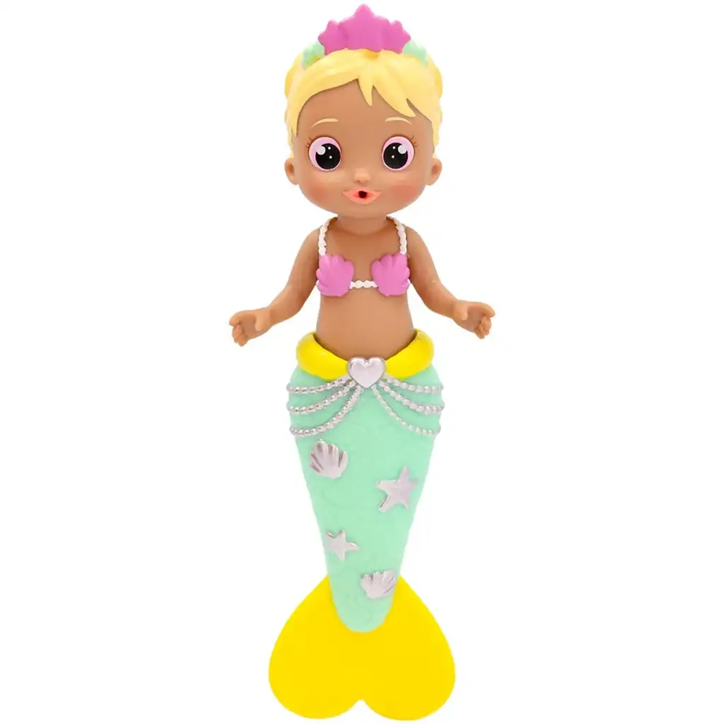 Cora, taneční miminko mořská panna ze série Bloopies, přináší do každého koupání opravdovou radost a pohádkovou atmosféru! Tato roztomilá malá mořská víla si získá každého nejen svým barevným a sympatickým vzhledem, ale i speciální funkcí: když ji vložíte do vody, ožije, tancuje a plave, takže se koupání promění v kouzelné podvodní dobrodružství.