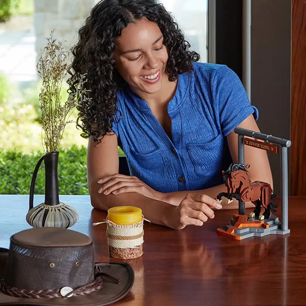 Sága Yellowstone je skutečným fenoménem a přestože hlavní seriál skončil pátou sezónou minulý rok, příběh pokračuje s prequely 1883 a 1923. Očekává se nejméně čtyři další spin-offy, takže fanoušci, kteří se chtějí zabavit do premiéry další části s názvem The Madison, si mohou postavit tohoto majestátního koně. Tento kůň stojí na skalnatém podkladu zdobeném charakteristickým Y z Yellowstone, má pohyblivý ocas a nohy a je umístěn pod tabulí Yellowstone Dutton Ranch.