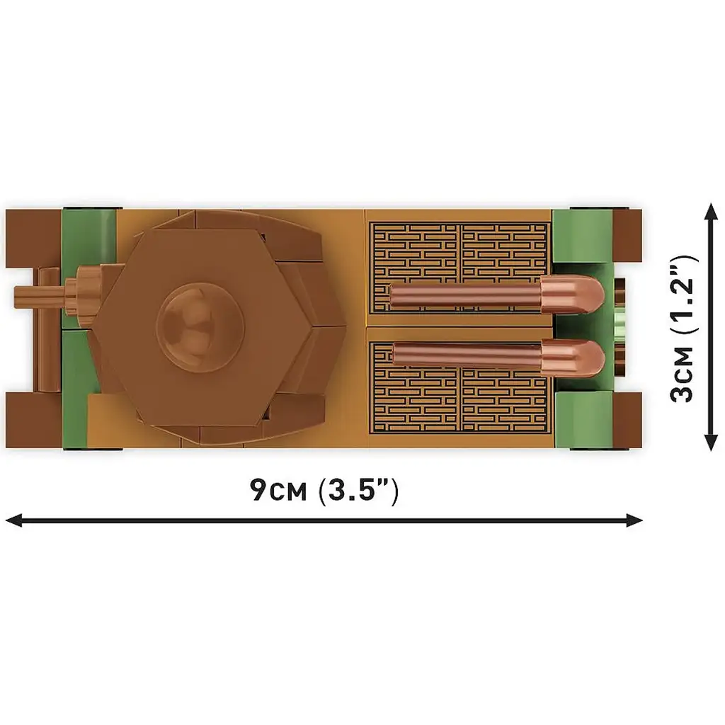 Tento model je zpracován v měřítku 1:72 a skládá se z 99 vysoce kvalitních stavebních dílků – vytvoříš tedy kompaktní, ale přesto detailní a odolný model tanku. Hotový model měří 9 cm na délku, 3 cm na šířku a 4,5 cm na výšku, přičemž jeho proporce věrně kopírují výrazné struktury originálního vozidla.