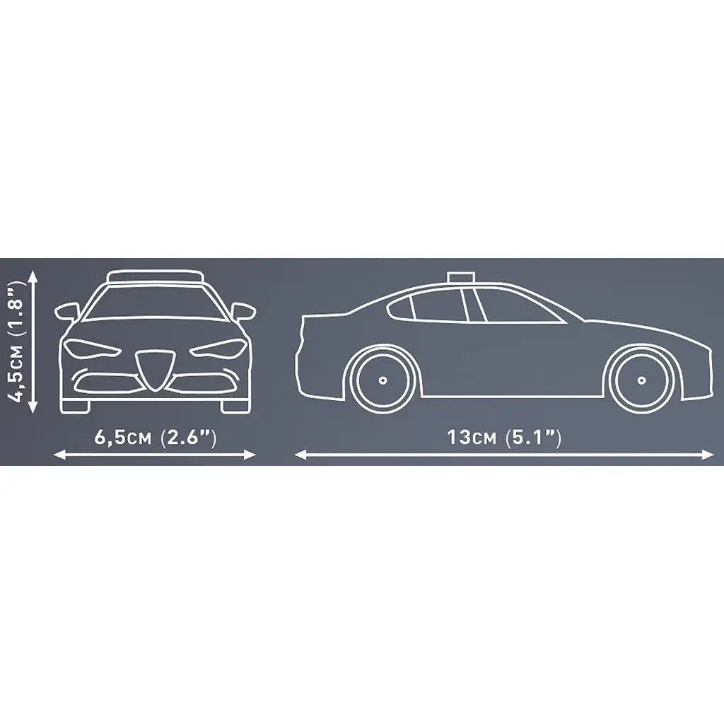 Stavebnice COBI Alfa Romeo Giulia Quadrifoglio policejní auto je speciální verzí ikonického sportovního sedanu, který se objevuje také ve flotile italské policie. Model věrně připomíná styl Alfa Romeo „Quadrifoglio" – spojuje symboliku čtyřlístku s oficiálními policejními designovými prvky, čímž získává jedinečný charakter při zachování věrnosti originálním tvarům.