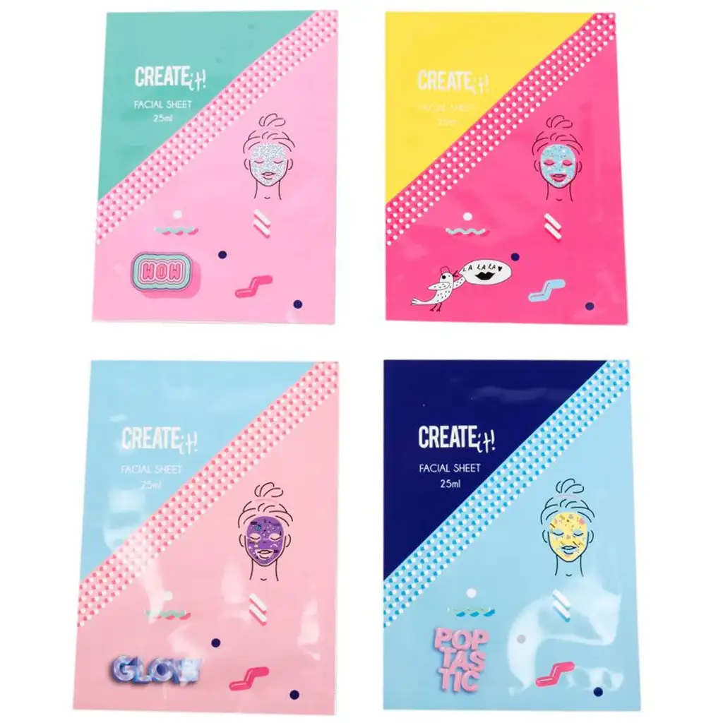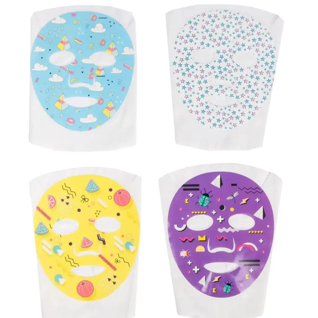 - 4 různé barevné, vzorované hydratační pleťové masky