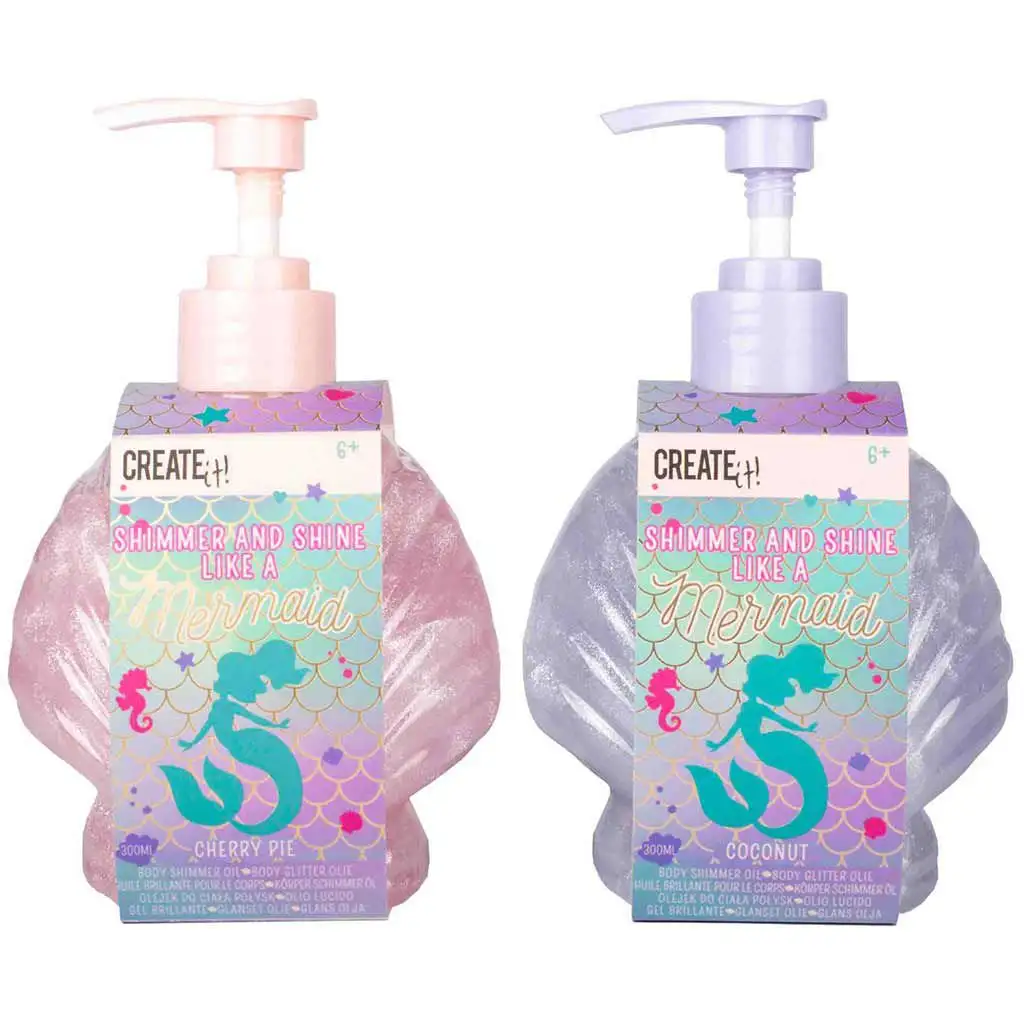 Přineste kouzelný mořský lesk do každodenního života s dvěma variantami tělového gelu "Create It! Mořská víla třpytivý tělový gel" od Canenco! Tento speciální tělový gel přichází ve flakonu ve tvaru mořské panny s pumpičkou pro snadné dávkování toho nádherného třpytu na vaši kůži. Jak růžová varianta s vůní višňového koláče, tak fialová varianta s kokosovou vůní zjemňují kůži a dodávají jí zářivý mořský lesk. Obě varianty jsou dostupné v balení 300 ml a doporučují se pro děti od 6 let. Buďte každý den výjimeční, nechte vaši kůži zářit jako hvězda!