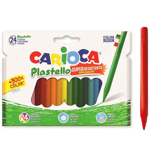 Malí umělci nyní mohou tvořit s mimořádně odolnými barvami, protože voskovky Carioca Plastello jsou o 300 % odolnější než tradiční voskovky! 24ks sada je skvěle použitelná, protože při kreslení nebo malování nedělá dětem špinavé ruce, ale na papíře zaručuje živé a odolné krytí. Plastello voskovky můžete používat doma nebo ve škole a jejich špičku můžete naostřit běžnou tužkou.
