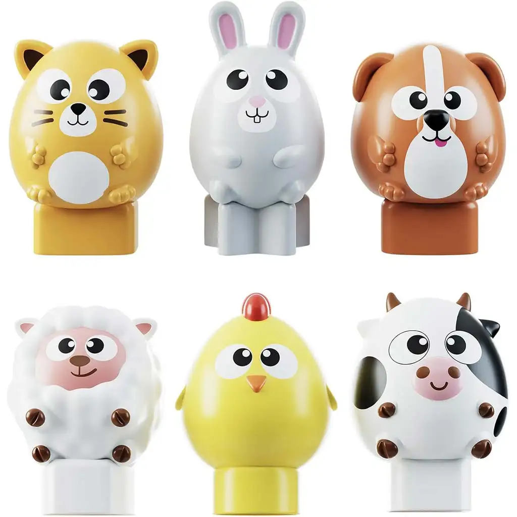 Ve hře je třeba šest různých zvířátek z farmy – kočka, králík, pejsek, ovečka, kuřátko a kráva – vložit správným otvorem do zelené podložky. Každá figurka má jedinečný tvar a roztomilý obličej, takže je děti snadno poznají a rozliší. Zvířátka mají velikost přizpůsobenou malým dětským ručičkám, takže je mohou bezpečně uchopit a snadno je umístit na správné místo.