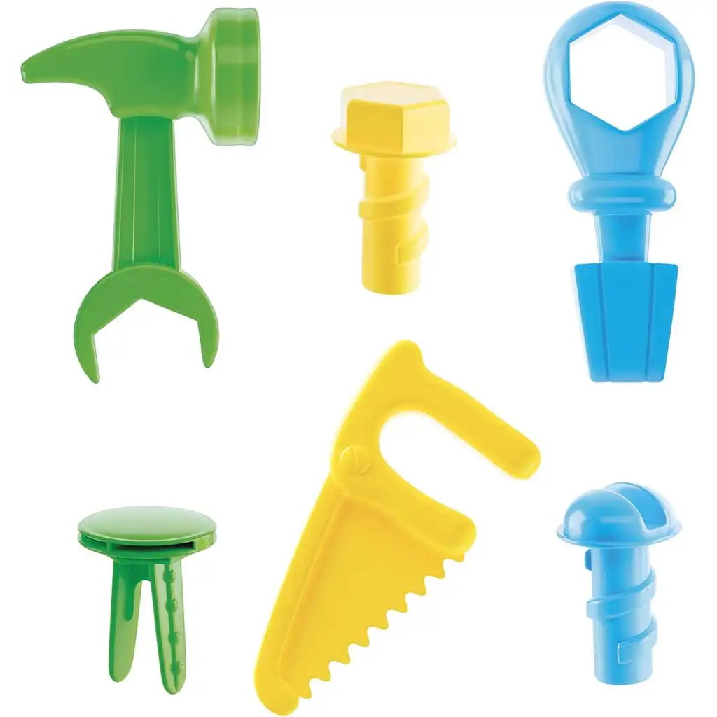 Sada obsahuje šest různých barevných tvarů – například šroubovák, kladivo, klíč nebo pilku – které vašemu dítěti pomohou seznámit se se základními tvary a nástroji, zatímco si formou hry zlepšuje koordinaci ruka-oko a schopnost řešit problémy. Díly fungují na principu samokontrolní skládačky, takže každý tvar lze vložit pouze do odpovídajícího otvoru, což zajišťuje úspěšný zážitek.