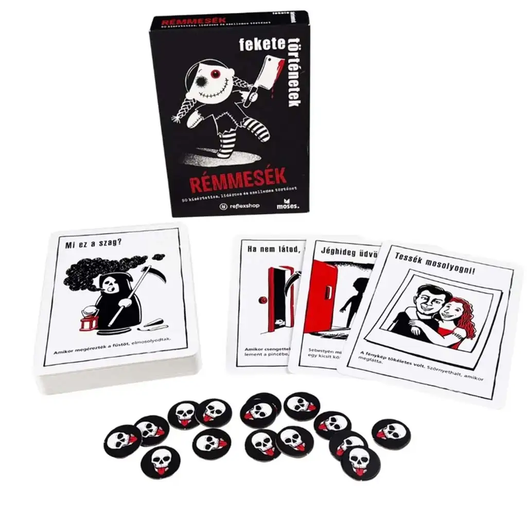 Připravte se na herní zážitek, při kterém vám bude běhat mráz po zádech – a přesto se budete smát, když budete řešit ty nejtemnější záhady! Černé historky: Děsivé příběhy jsou opravdu jedinečnou společenskou hrou, která obsahuje 50 bizarních, děsivých a přesto zábavných příběhů, v nichž se mísí skutečné úmrtí a morbidní humor. Ne každé tajemství končí šťastně... ale právě to dělá hru ještě napínavější!