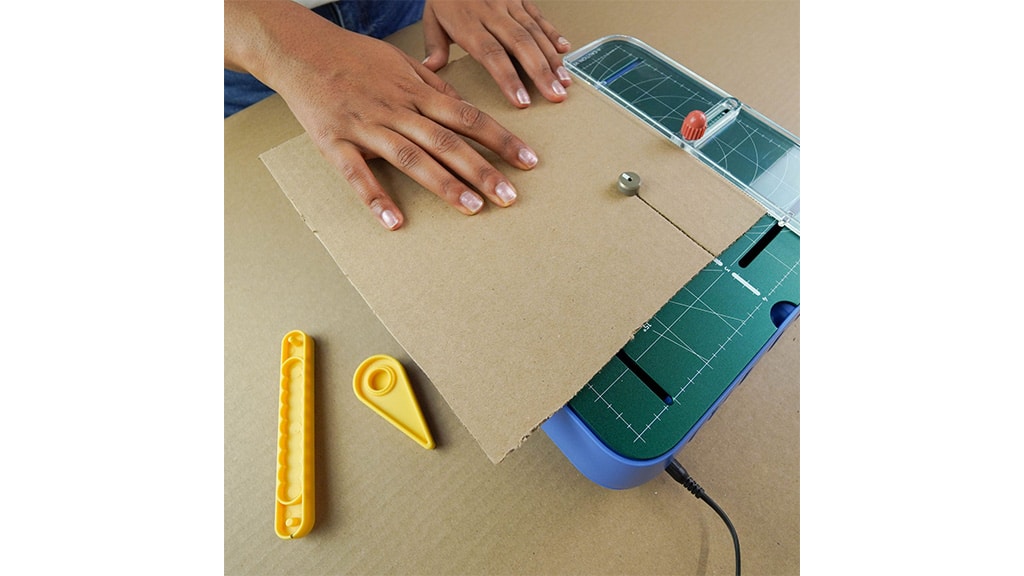 , který funguje jako rychlý děrovač, se kterým lze snadno řezat karton, plst a další materiály. Sada obsahuje také děrovač, řezací nástroj, připojitelnou pravítko, šablony na kruhy a úhly a také vynálezcovský pracovní sešit, který pomáhá dětem realizovat vlastní nápady.