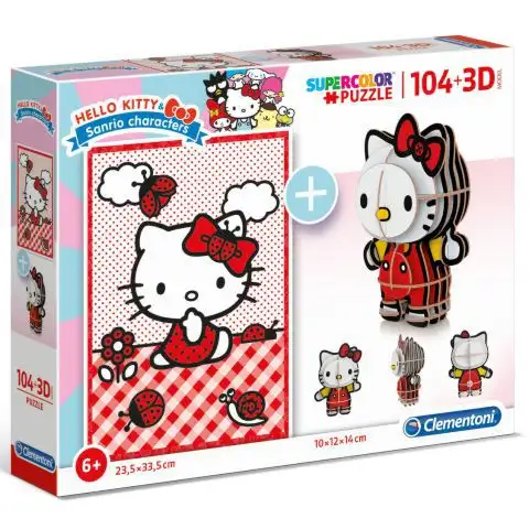 Clementoni: Hello Kitty 2 v 1, 104 dílkové puzzle a modelová figurkaClementoni: Hello Kitty 2 v 1, 104 dílkové puzzle a modelová figurka