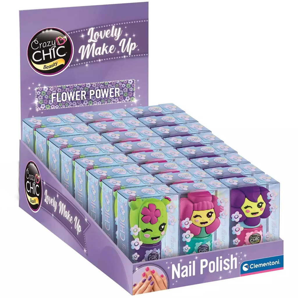 Crazy Chic květinový lak na nehty je perfektní volba, pokud se vaše dítě chce hravě seznámit se světem lakování nehtů. Veselý květinový design a roztomilá víčka s figurkami používání ještě více zpříjemní, takže hra na líčení se stane opravdovým zážitkem. Různé barvy dávají možnost kreativního vyjádření, zatímco malé lahvičky jsou snadno ovladatelné i pro děti. Ideální dárek pro každou holčičku, která chce do každodenního života přinést trochu lesku.