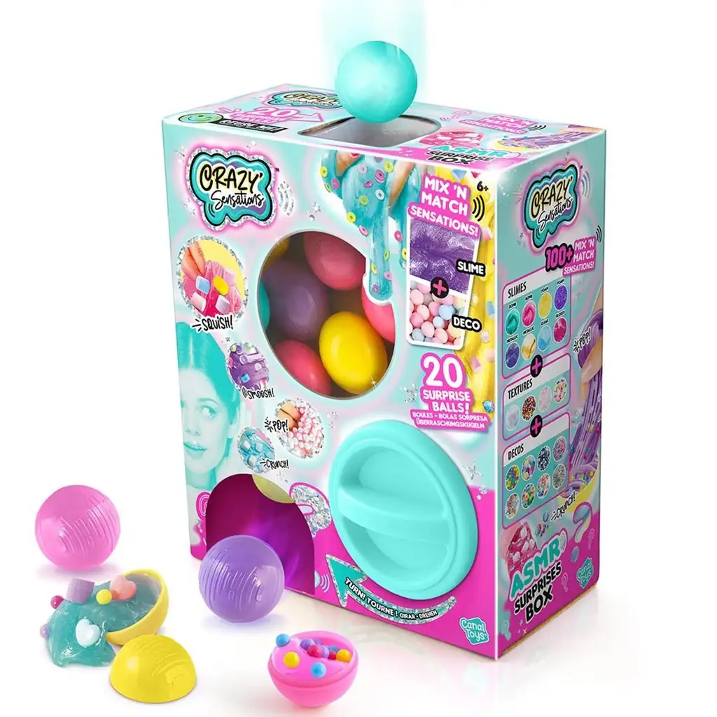 Crazy Sensations ASMR PříSurprise Box je dokonalou kombinací kreativity, hravosti a smyslových zážitků, které děti (a potají i dospělí) zbožňují! Tato krabička ukrývá 20 barevných překvapivých koulí, z nichž každá poskytuje nějaký speciální senzorický zážitek. Najdete zde lepkavé, pěnové, gelovité, skákající, korálkové a strukturované slizy, které můžete podle libosti míchat, mačkat a tvarovat.
