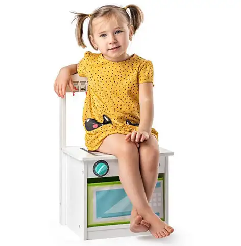 Ne ve všech dětských pokojích se vejde větší dětská kuchyňka, ale tato roztomilá malá kuchyňka bude určitě oblíbená u malých dívek. Celá malá kuchyňka je vyrobena ze dřeva a zobrazuje sporák s troubou, na kterém si dívky mohou skvěle hrát na pečení a vaření všech malých procesů. Hračka navíc svou konstrukcí a robustností může sloužit i jako malý stůl. Hračka vyrobená z kvalitního dřeva je velmi odolná a vodou ředitelná barva neobsahuje látky škodlivé pro děti, takže si s ní mohou bez obav hrát.