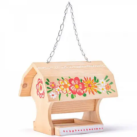 S blížící se zimou budou mít ptáci stále větší problémy sehnat potravu, ale děti jim mohou udělat radost tímto skvělým setem pro krmítko pro ptáky. Krmítko je v setu již sestavené, ale je k němu přibaleno také čtyři kelímky s barvou, kterou mohou děti použít k individuálnímu zdobení krmítka. Mohou pokrýt celý povrch nebo ho ozdobit různými vzory. Hotové krmítko může být umístěno do zahrady, naplněné různými chutnými semeny, čímž pomůže ptákům přežít zimu. Tato hračka vyrobená z kvalitního dřeva je velmi odolná a vodou ředitelná barva neobsahuje látky škodlivé pro děti, takže si s ní mohou bez obav hrát.