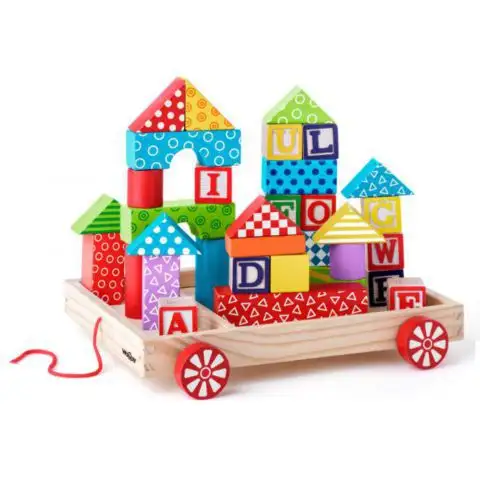 Dřevěný vůz ABC s konstrukčními kostkami a písmenovými kostkami