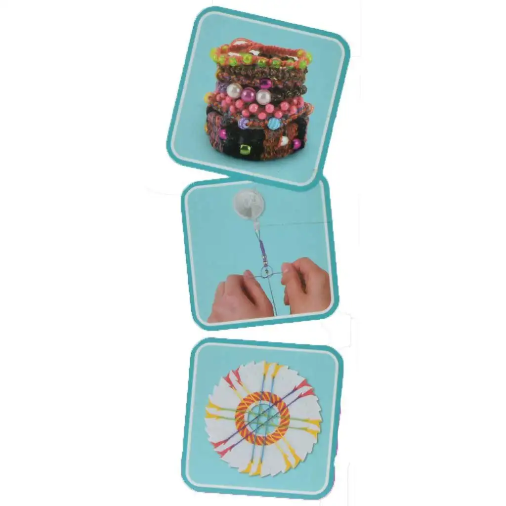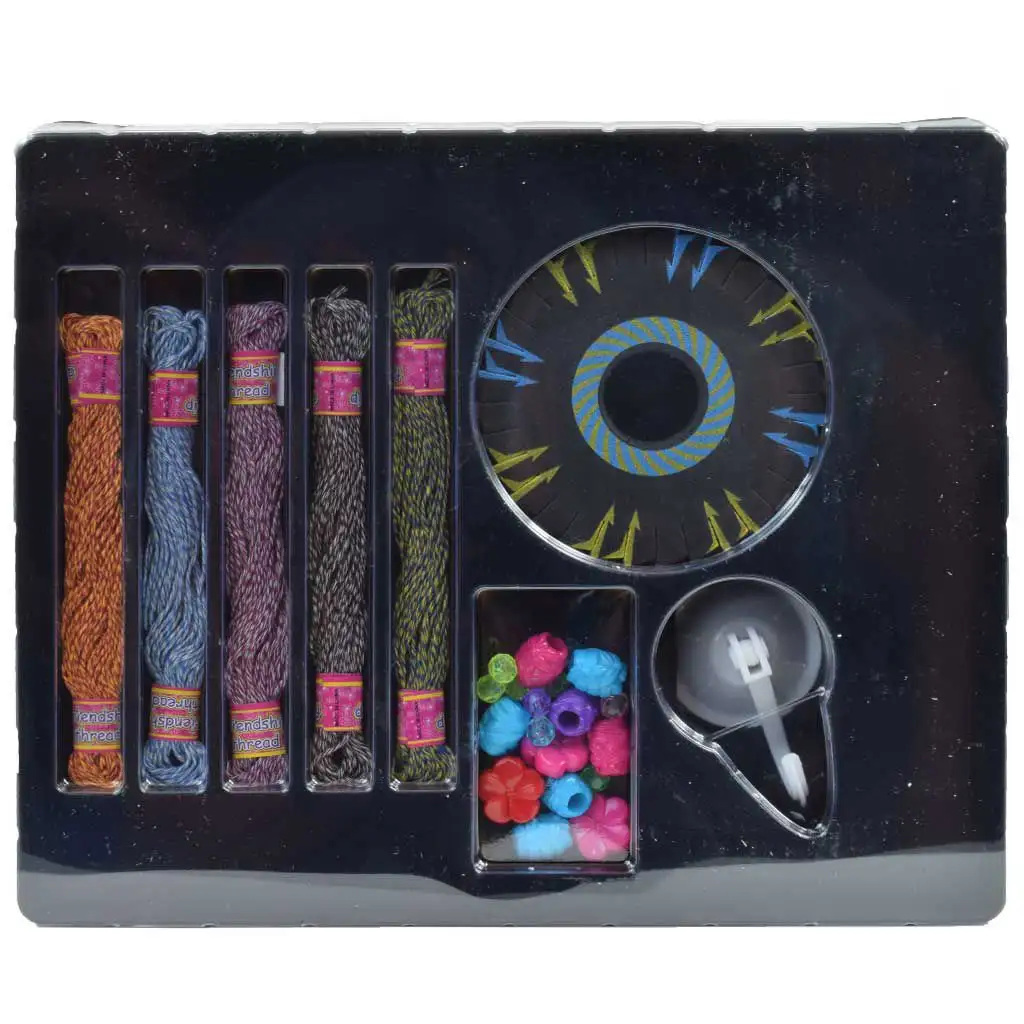7. **Doplnitelná Sada:** Pokud se materiály vyčerpají, sada může být znovu naplněna jakoukoli nití a korálky, takže výroba náramků nikdy nepřestane.